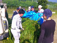当日も草を刈る人、草を集める人、運ぶ人・・