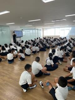 子どもたちはしっかりと話を聞いている様子でした。(主幹教諭;下山)