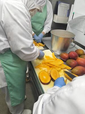 今日のフルーツ杏仁には、合志市産の「マンゴー」が入っています。