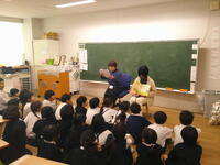クイズ形式で子どもたちに尋ねながら交流されているところ。