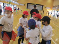 6年生は学年全体と第一小の6年生8名と一緒に色ボード返しのゲームを行っていました。・・・第一小の児童がわからない・・・。