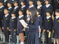 校長式辞では、新入生に3つのお願いをしました。「①きまりを守って安全に気をつけること(特に登下校時の交通事故に気をつけること)、②しっかりとお話(先生のお話、友達の発表など)を聞いて勉強をがんばること、③友達をたくさんつくること」の3つです。