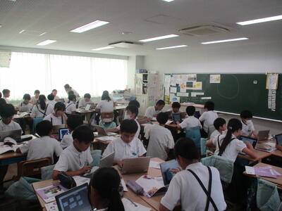 〇中学1年1組・・・「今、海が好き、水俣が好き」と題した水俣病問題学習。水俣病に対する偏見や差別の愚かさを学んだ。また、差別に立ち向かう勇気についても学ぶことができた。