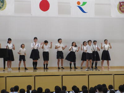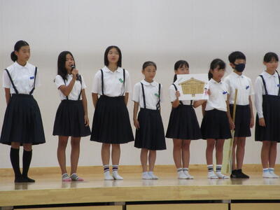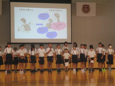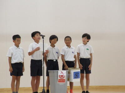 最後に、生活委員会、環境・ボランティア委員会、放送委員会の児童がこれまでの取り組みを発表しました。