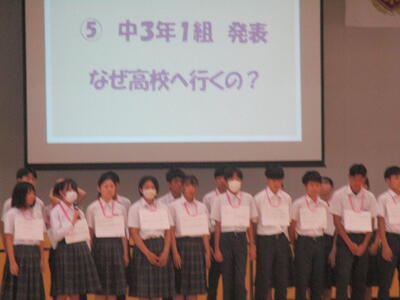 〇中学3年1組・・・「なぜ、高校にいくの?」と題した進路学習。高校の優劣を偏差値で決めている。偏差値が低い高校を馬鹿にしている。高校に対する偏見や差別があることに気付いた。偏差値の高低ではなく、自分にあった高校を選びたい。そして、「それぞれの進路、それぞれの人生を応援できるクラスにしたい」という思いを残した。