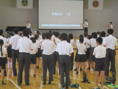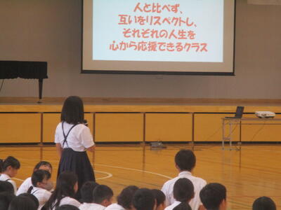 本日、1、2校時に「縦割り人権集会(小5~中3のAグループ)」がありました。その内容は、以下のとおりです。