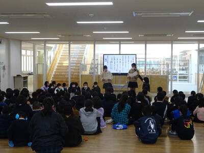 楓の森小学校の学校紹介は、冬休み前の1週間ほどを使って、企画委員会の5年生でプレゼンテーションをつくり準備を練習をしてきました。22日の昼休みには、1年3組教室で6年生の企画委員の参観してのリハーサル(次の2枚の写真)も行い、今回の本番でも楓の森小の特色をしっかりと紹介することができました。