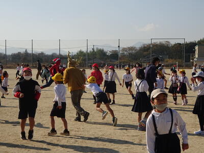 体育委員会主催のLet's楓スポーツタイムも3回目となりました。今回は、事前に体育委員が先生方に「鬼になってください」という丁寧な招待状も届きました。運動場には参観(応援)されている先生達や鬼になった先生達が子ども達と鬼ごっこを楽しみました。