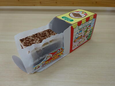 今日のメニューはクリスマスバージョンでした。子ども達が好きな唐揚げとケーキです。箱入りのケーキを引き出すとそりにケーキをのせたサンタさんが現れてきました。
