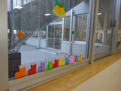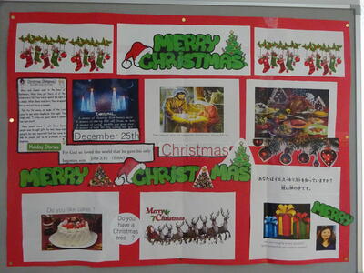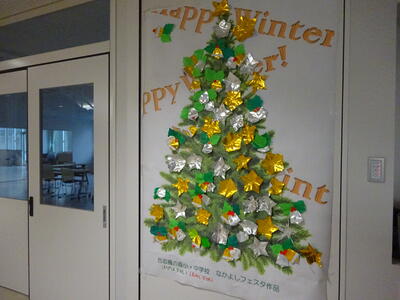 今日はクリスマスイブ。みんなの玄関では、登校してきた子どもたちが「俺、もうプレゼント届いたよ」「今日くるのかな?」などとクリスマス話題で盛り上がっていました。今日で、後期前半が終わります。校内にも子ども達や委員会、先生達によるクリスマス関係の飾りや掲示がいたるところに見られます。