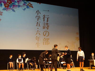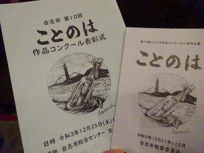 第10回「ことのは作品コンクール」表彰式が、25日(土)午前中に文化会館で行われました。市内小中学生の「一行詩」「ポエム」「作文」「短歌(中学生のみ)」の4部門に4107点の応募があり、最優秀賞15点、優秀賞31点、入選49点が選ばれています。合志楓の森小学校からは、11名の子ども達の作品が入賞しています。