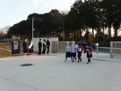 今朝の東門では、会長、副会長、書記の候補者と推薦者のあいさつによる選挙活動が行われていました。小学生にとっては、何があっているのかな?といった戸惑いの表情もありましたが、「選挙があるの?」と尋ねてくる小学生もいました。中学校の生徒会選挙があるとことを伝えると「僕たち(小学生)も投票できるんですか?」と質問。残念ながら、投票はできませんが、小学生にとっても中学校での生徒会選挙の様子を間近で見ることができるのは、とても貴重だと思います。