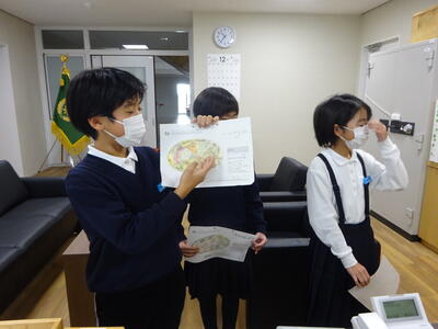 今日は、2組で「This is my town」の授業で、子ども達が県内の市町をプレゼンテーションを使いながら英語で紹介するプレゼンが行われていました。子ども達にとって、プレゼンテーション作りは今やお手の物ですが、3人グループでの英語を使った紹介も上手でビックリしました。音声でお伝えできないのが残念です。