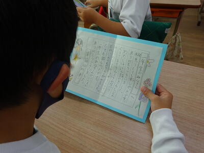 手紙をもらった1年生は大喜びで、早速、ワクワクしながら手紙を読んでいました。2年生のお手紙は、漢字にふりがなをつけるなど、1年生が読めるような細やかな気配りの文章で、さすが2年生のお兄ちゃん、お姉ちゃんでした。