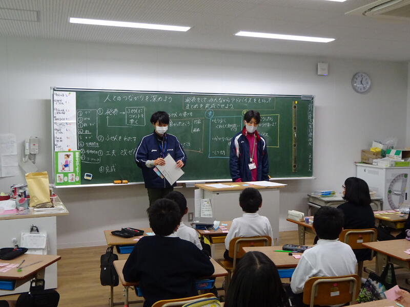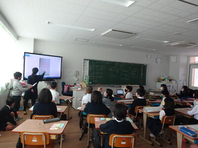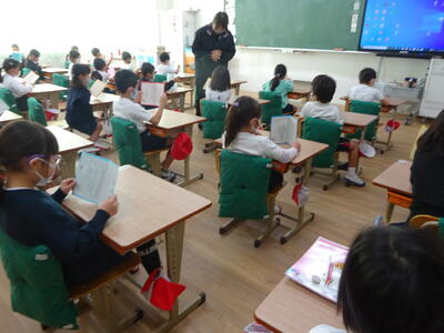 6年生(3クラス)の外国語は、楓の森中の坂本先生が週2時間の授業を担当してもらっています。来年、楓の森中学校に入学する6年生にとっては、1年早めに中学校の先生の授業を受けることができています。