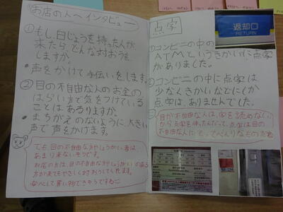 4年生の総合的な学習の時間「人とのつながりを深めよう」の学習もまとめになってきています。これまで合志市社会福祉教委議会の方々から「福祉」について学んだり(7月14日ブログ)、福祉体験(10月19日ブログ)、それぞれのテーマを調べたり(11月22日ブログ)してきました。