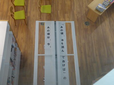 上から見ないと見えない言葉・・・。こんなところに掲示することを思いつくのは、アイディア豊富な図書司書の堀田先生以外いないと思うのですが。図書室は、閉室中ですが、みなんさんもこの掲示を見つけてみて、堀田先生にぜひ尋ねてみてください。