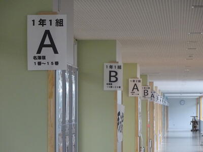 すでに各教室の入り口には、分散するための振り分け表示がつけられていました。中学生のみなさん、明日からの期末テスト、今までの学習成果をしっかりと発揮してください。ファイト!