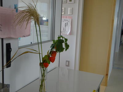 1年4組の教室入り口にススキとホウズキが飾ってありました。担任の三城先生が持ってこられたとのこと。