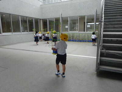 1年生の子どもたちは、「みんなのを守らなきゃ!!」といいながら、ベランダと廊下、遊び場(中庭)を何度も行き来してくれていました。ありがとう。