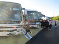 バスの中では、サザエさんのエンディングやカンナム・スタイルなどを「お笑い係」が曲に合わせて踊ったり(シートベルトをしてきちんと座っていますが・・・・)、ガイドさんが用意したゲームをしたりして盛り上がっています。