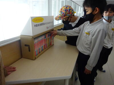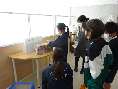時間は、昼休み時間のみで、図書室横のグランド側廊下のスペースでの閲覧となります。8日(水)には、マンガミュージアムの担当者の方が来校され、マンガ設置等を行われました。今後は、小中の図書委員会有志の仕事の一つとして、マンガの管理などを行ってくれる予定です。