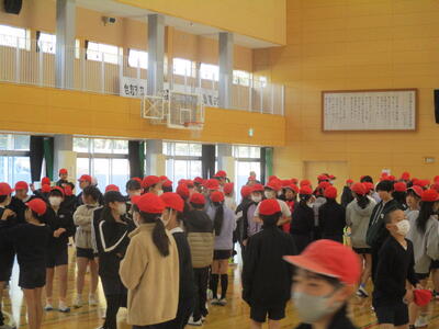 6年生は、「リユニオン会」を開催しました。「リユニオン会」とは、再会を意味する会のことです。今の6年生が、3年生になる時に本校が開校しました。その際に別れた合志南小学校、西合志東小学校の子どもたちと本日再会しました。本日は、レクレーション(しゃもじリレー、どんジャンケン、猛獣がり等)を楽しみ、その後、フリータイムで交流しました。再会を喜ぶ姿が見られました。