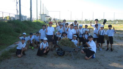 手間暇かかりますが、確実にきれいになってきています。進んでお手伝いをしてくれている子どもたちも知恵やコツをつかみ、自ら軍手を用意してきたり、細い棒を使って根っこを掘り起こしたりして手伝ってくれます。