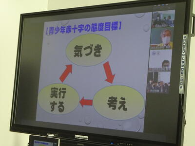 県内の加盟している小中学校の児童生徒が集まるリーダーシップ・トレーニング・センターが毎年開催されていますが、新型コロナウイルス感染拡大防止のため、2年間中止されています。今回、その代替事業として、青少年赤十字オンライン・ミーティングが開かれました。