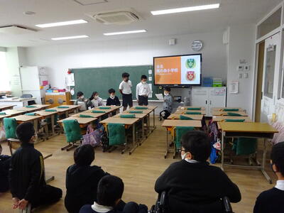 楓の森小学校の学校紹介は、冬休み前の1週間ほどを使って、企画委員会の5年生でプレゼンテーションをつくり準備を練習をしてきました。22日の昼休みには、1年3組教室で6年生の企画委員の参観してのリハーサル(次の2枚の写真)も行い、今回の本番でも楓の森小の特色をしっかりと紹介することができました。