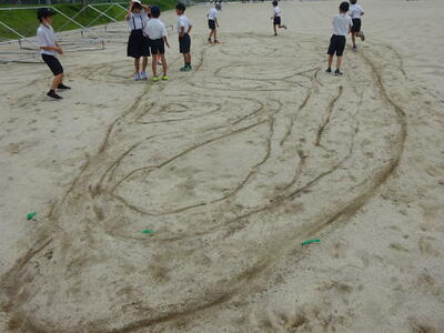 ここ最近、4年生の子ども達の中で遊んでいる鬼ごっこが「めいろ鬼」。運動場に子ども達は「迷路」を描き、その迷路を使った鬼ごっこです。聞くと、自分たちで考え出したとのこと。「こどもは遊びの天才」と言われますが、いろいろな遊びを作り出したり、状況に応じたルールを作ったりと遊びの力は無限だなど改めて感じました。