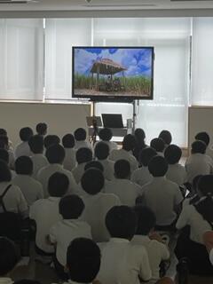 子どもたちは、戦争について、遠い過去こととしか認識できていません。そこで、本日「さとうきび畑の唄」というドラマを鑑賞しました。この「さとうきび畑の唄」は、太平洋戦争の頃の沖縄と沖縄戦を舞台にした物語で、内容は家族の尊さを扱った反戦ドラマです。 (校長 佐藤 政臣)
