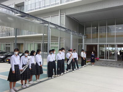合志楓の森中学校の生徒会選挙は11月4日(金)に行われます。本格的に選挙活動が始まり、登校時間に合わせて立候補者と応援者による挨拶が行われています。