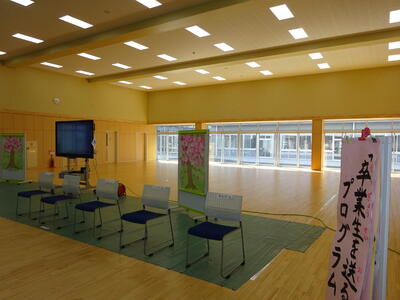 小・中合同でわかば学級(小学校)ともみじ学級(中学校)の「卒業生を送る会」が武道場で行われました。中学校は今年度1・2年生のみの在籍のため、小学校6年生8名の卒業を祝う会となりました。