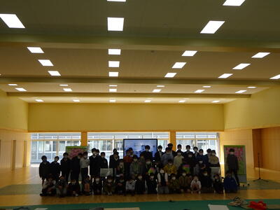 小学校5年生を中心にそれぞれの学年がクイズやお祝いのための様々な準備をしてくれました。クイズでは、わかば学級やもみじ学級に関することから卒業生や先生方に関することなど、初めて知ることもあり発見と笑いありの楽しいクイズとなりました。また、中学生は中学校の授業や学校生活、部活動について分かりやすく紹介をしてくれ、卒業生も安心でき期待も高まったのではと思います。