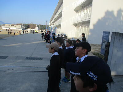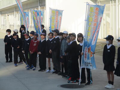 朝のあいさつ運動の輪が広がっています。今日は、3年生と4年生があいさつ運動に参加しました。みんな気持ちのよいあいさつができていました。中学生と一緒にがんばりました。