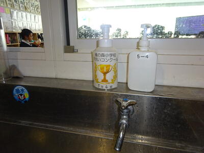 今回の結果は、5年4組!!クラスみんなで気合いを入れて?取り組んだとのことです。次回までの金のボトル!が手洗い場に輝いていました。
