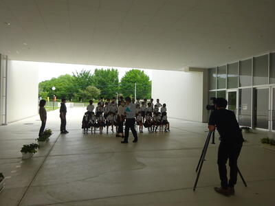 撮影場所は、体育館と武道場前の「こうしのみち」です。屋外の屋根付き場所で雨天時も撮影可能な場所で、藤原さんによると感染対策もとれ、もちろん背景などもいいそうです。