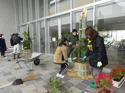 門松は、新しい年の年神様をお迎えするために拠り所(目印)となると言われており、合志楓の森小・中学校も来年は、さらによい年となると思います。