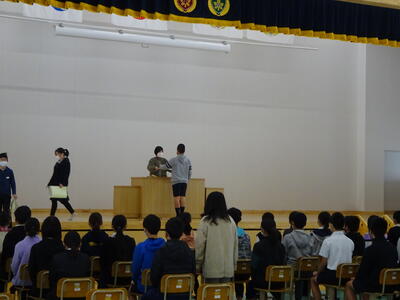 6年生は体育館で卒業式の練習も始まっています。体育館での練習は4回ほどです。体育館の床にシートを敷いて、教室から椅子を運び込み、練習をして、椅子の運び出し、シート片付け、ステージ等の片付けを1時間(45分間)で行っています。