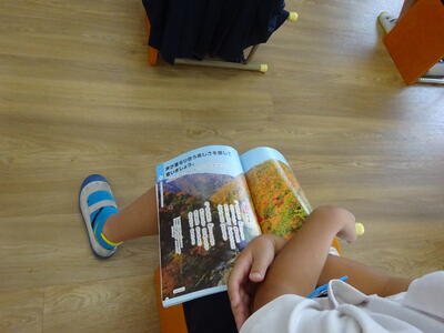 音楽室から聞こえてくる「♪あ~きの ゆ~うひ~に て~るや~ま~も~みじ♪」。窓をあけていても過ごしやすくなったこの季節にぴったりの「もみじ」の歌にさそわれて音楽室に向かいました。