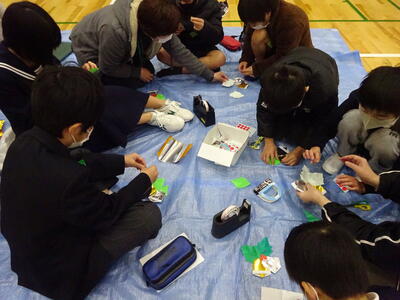 事前準備もしてくれ、全体進行やグループリーダーも中学生が行ってくれました。グループ内での自己紹介では、切り絵が得意だ中学2年生に小学生が色々質問をして、最後には、作ってほしいものを小学生がリクエストするなど和やかな雰囲気の中進んでいきました。