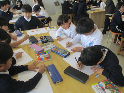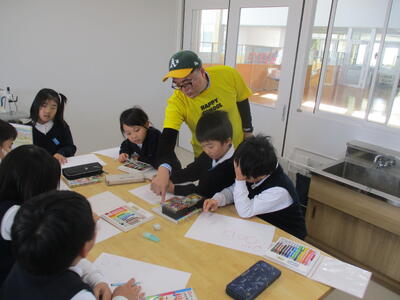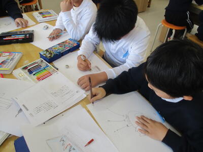 「自由にキャラクターを設定して描きましょう」という学習は、何を描いたらいいのかわからないという子もいます。想像しながらキャラクターを創っていく作業は、様々な能力が必要になります。思い思いに色鉛筆を走らせることができる子もいれば、想像力を発揮できずにいる子もいます。そのような子供たちにもTOMMYさんがやさしくアドバイスしていただいたおかげで全員描くことができました。