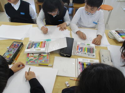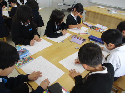 キャラクターを設定したら、色鉛筆で思い思いに描いていきます。