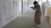理科室の前で司書の堀田先生を発見。何やら授業のメモをしている様子。この授業の後半で6年生が理科の調べ学習に図書室に来室とのことで、事前に何の学習か見に来られていました。