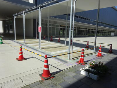 昨年度の開校以来の懸案事項だった校舎から体育館や武道場までのルート「こうしのみち」。校内では、プランターを設置し、掲示等を行って、上履きと外履きの境を周知していましたが、来校者の方々にはわかりずらい面がありました。