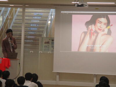 英語もフランス語も話すことができない状況で、単身パリに渡り、多くの失敗を重ねながら、言葉の壁を乗り越えてモデルになったことを笑顔でお話しされました。また、各国共通で通じ合えるものは、「笑顔」だそうです。「笑顔」でコミュニケーションをとったことが成功の秘訣だと・・・。