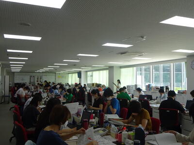 70名程の先生方が7つの中部会に分かれて、具体的な取組を進める組織となっていますが、今回は、ぞれぞれの中部会から進捗状況等の説明と共有、その後は、小中合同委員会活動の前期後半からの活動をどのようにしていくのか、各委員会に分かれて小・中の先生方での協議を行いました。