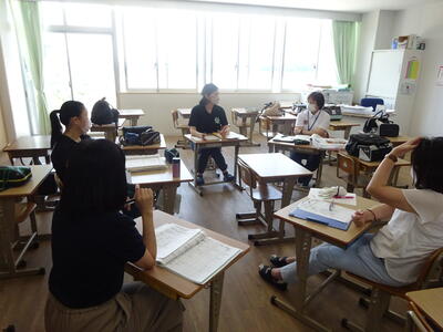 今日のの午前中、小中合同研修会を行いました。今年も小中合同で校内研究を進めており、研究主任の岩田先生(小学校)と別府先生(中学校)を中心に「自他の存在を大切にし、自ら考え、自ら行動できる児童生徒の育成~学びの連続性を意識した教育活動を通して~」を研究テーマに進めています。(詳細は「学校の概要」ページ)
