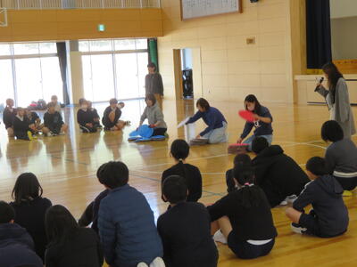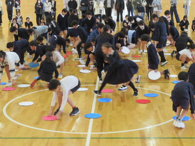 10日(火)、延期になっていた6年生の親子学年レクレーションが開かれました。小学校の最後の思い出作りということで保護者の皆様が企画されました。巨大オセロ、思い出神経衰弱等、楽しい企画で盛り上がりました。最後は、運動会のソーラン節を久しぶりに披露し、たくましく踊る様子を楽しんでいただきました。毎日の様に卒業イベントが続いています。子どもたちも少しずつ、卒業の実感が湧いてきているのではないでしょうか。お忙しい中、本レクレーションを企画された皆様、お集まりくださった皆様、大変ありがとうございました。(主幹教諭 濱坂 由紀美)